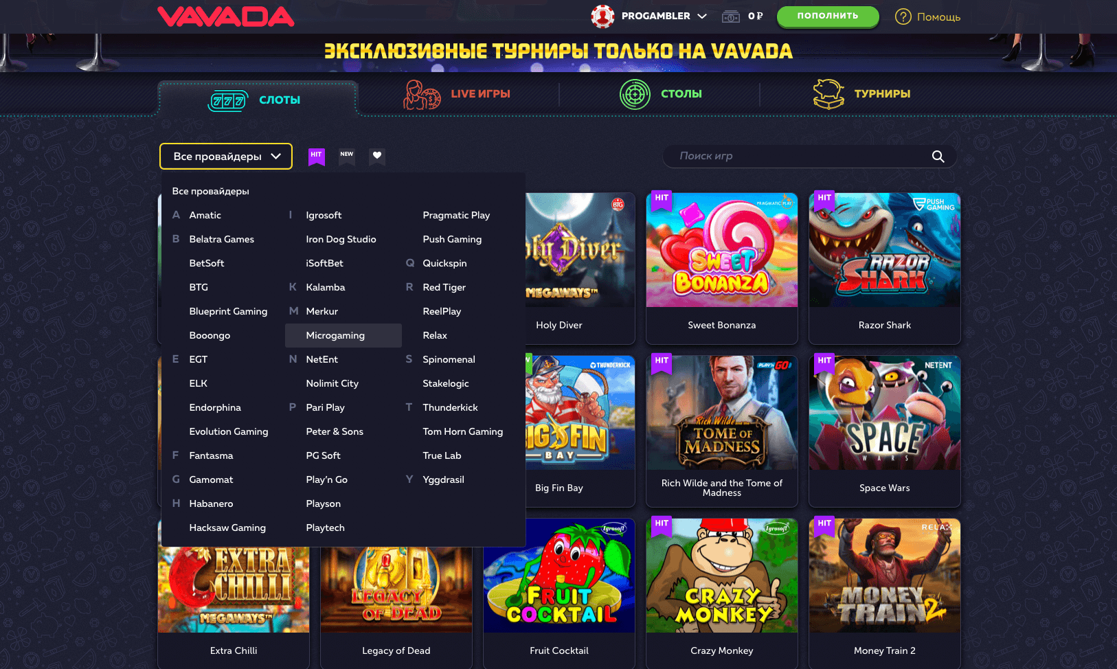 Казино Vavada предлагает своим посетителям разнообразный игровой контент, который разделен на несколько категорий: